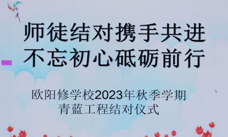 “青藍(lán)”薪火傳九月,新老互促鑄師魂,2023年9月6日,宜昌歐陽(yáng)修學(xué)校隆重舉行了“青藍(lán)工程”師徒結(jié)對(duì)儀式和青年教師座談會(huì)。