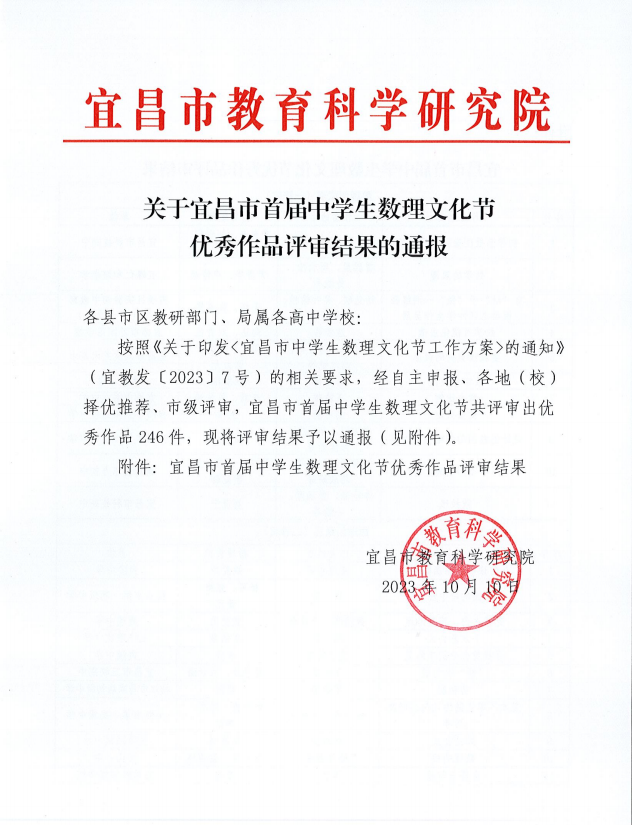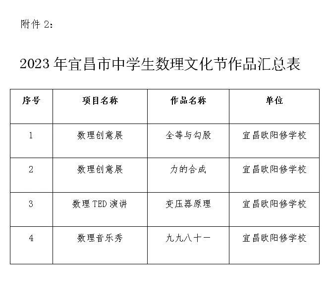 在宜昌市首屆數(shù)理文化節(jié)優(yōu)秀作品展評活動中,宜昌歐陽修學校學子載譽歸來。我校共報送優(yōu)秀作品4件,其中2件獲得市級獎項,分別是二等獎和三等獎。