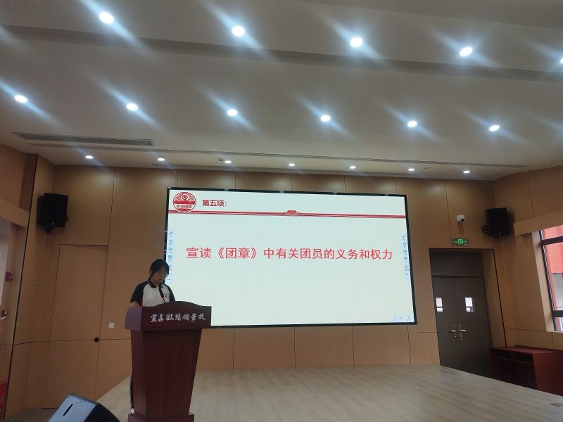 第五項,溫羨妮同學(xué)宣讀團員權(quán)利和義務(wù)。