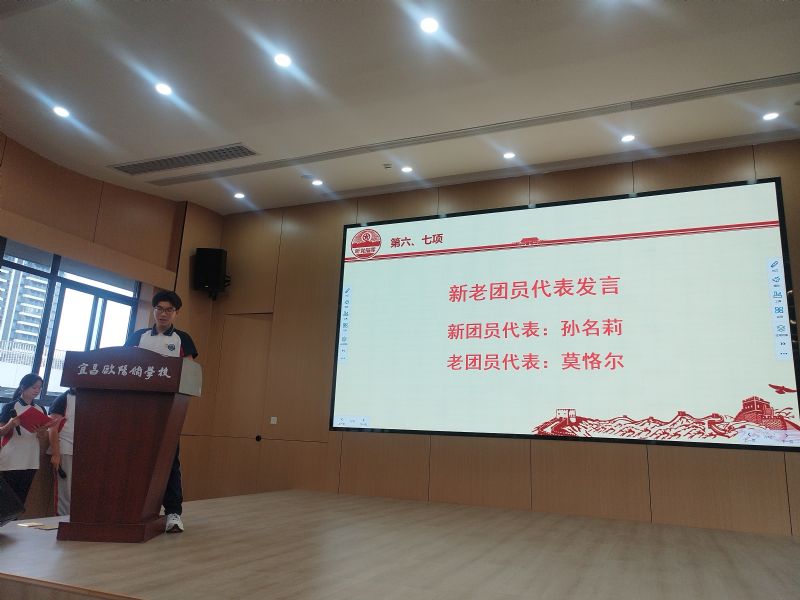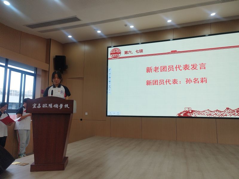 第七項,老團員代表莫恪爾同學(xué)講話。