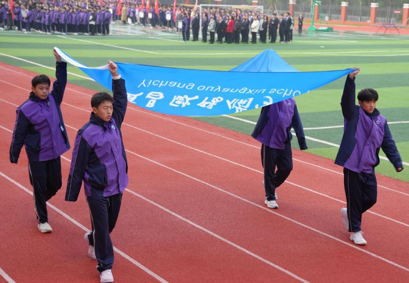 今天上午,運(yùn)動(dòng)會(huì)開幕式在莊嚴(yán)的國(guó)歌聲中正式拉開序幕。伴隨著雄壯的運(yùn)動(dòng)員進(jìn)行曲,國(guó)旗隊(duì)、彩旗隊(duì)、花束隊(duì)依次走過(guò)主席臺(tái),鮮艷的五星紅旗在藍(lán)天下迎風(fēng)飄揚(yáng)。