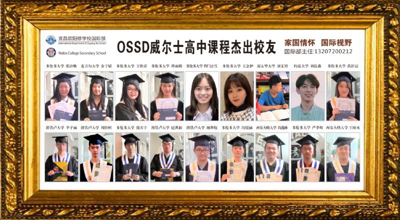 ●留學項目——OSSD 2+1大學直通車項目(高中文憑課程2+1+世界知名大學直通車)國際部開設的OSSD是加拿大安省高中課程,學制是宜昌歐陽修學校學習2年,赴加拿大威爾士高中學習1年(WalesCollegeSecondarySchool), 獲得全球認可的加拿大威爾士高中文憑, 申請世界名校. OSSD是加拿大安大略省高中畢業(yè)文憑 Ontario Secondary School Diploma 的縮寫。自2013年以來,取得了引人注目的 12年的合作成果。威爾士高中WalesCollegeSecondarySchool,在加拿大安省教育廳高中注冊,學校治學嚴謹,聲譽卓著,是多倫多SAT美國高考官方考試中心/ACT美國高考官方考試中心/IELTS雅思官方考試中心。威爾士高中歷年來的畢業(yè)生在各項考試和競賽中都名列前茅,歷屆畢業(yè)生100%升入加拿大多倫多大學、麥吉爾大學、普林斯頓大學、康奈爾大學等頂尖名校以及英、澳、新加坡、中國香港等世界名校。