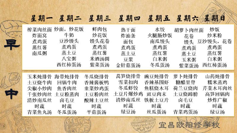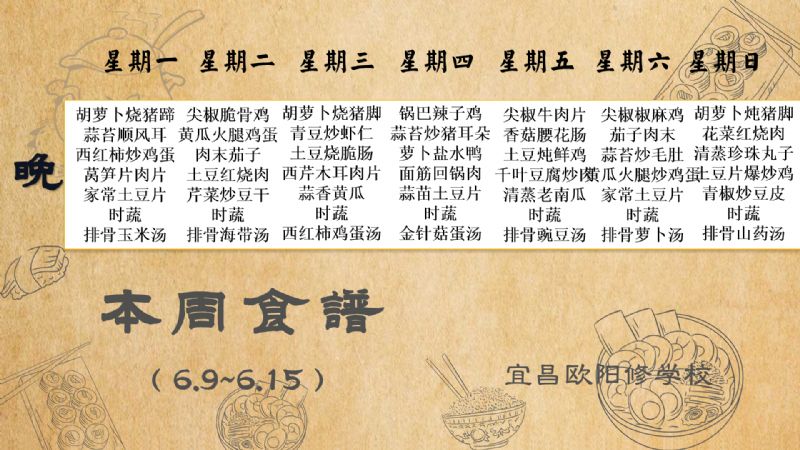宜昌歐陽修學(xué)校每周食譜(6月9日至6月15日)