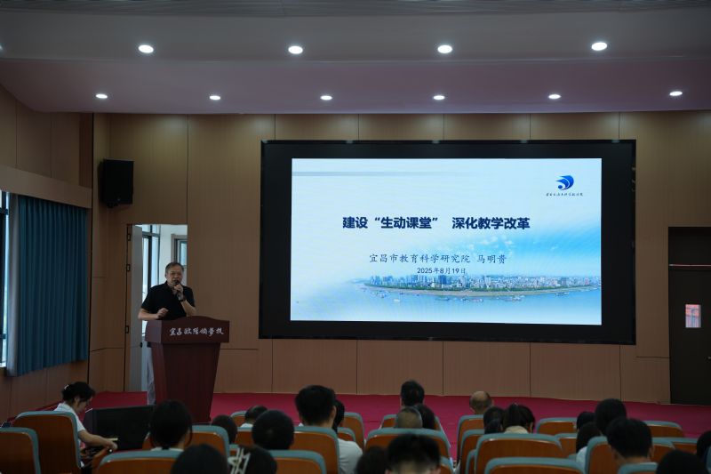 8月19日上午,馬院長(zhǎng)以“建設(shè)生動(dòng)課堂,深化教育改革”為題,從“生動(dòng)課堂”建設(shè)的必要性、“生動(dòng)課堂”的內(nèi)涵和特征、“生動(dòng)課堂”的實(shí)施路徑三個(gè)方面作引領(lǐng)報(bào)告。他強(qiáng)調(diào),“強(qiáng)教必先強(qiáng)師,強(qiáng)師必先強(qiáng)課堂”,生動(dòng)課堂建設(shè)是回應(yīng)時(shí)代對(duì)高質(zhì)量教育迫切需求的必然選擇。馬院長(zhǎng)系統(tǒng)闡釋了生動(dòng)課堂的核心內(nèi)涵——即以素養(yǎng)目標(biāo)為引領(lǐng),依托真實(shí)情境創(chuàng)設(shè)與學(xué)科實(shí)踐深化,激發(fā)學(xué)生深度思維和主動(dòng)參與,最終呈現(xiàn)生機(jī)勃勃的課堂生態(tài),并進(jìn)一步提出“四維聯(lián)動(dòng)”實(shí)施路徑:以價(jià)值觸動(dòng)為魂,深刻理解教學(xué)內(nèi)容蘊(yùn)含的育人價(jià)值;以內(nèi)容聯(lián)動(dòng)為基,注重知識(shí)的整合與綜合學(xué)習(xí);以思維觸動(dòng)為要,通過(guò)實(shí)踐活動(dòng)激發(fā)學(xué)生深度思考;以學(xué)習(xí)主動(dòng)為本,關(guān)注學(xué)生差異,落實(shí)因材施教,調(diào)動(dòng)學(xué)習(xí)積極性。這些內(nèi)容為教師如何上好生動(dòng)課堂指明了努力方向和具體路徑。馬院長(zhǎng)用一個(gè)個(gè)鮮活的案例將我們帶入一個(gè)個(gè)真實(shí)的教育場(chǎng)景中,為老師們帶來(lái)了一場(chǎng)兼具深度與溫度的盛宴。