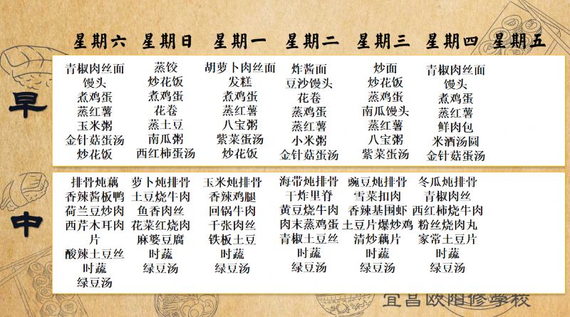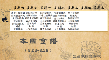宜昌歐陽(yáng)修學(xué)校每周食譜(8月23日至8月28日)